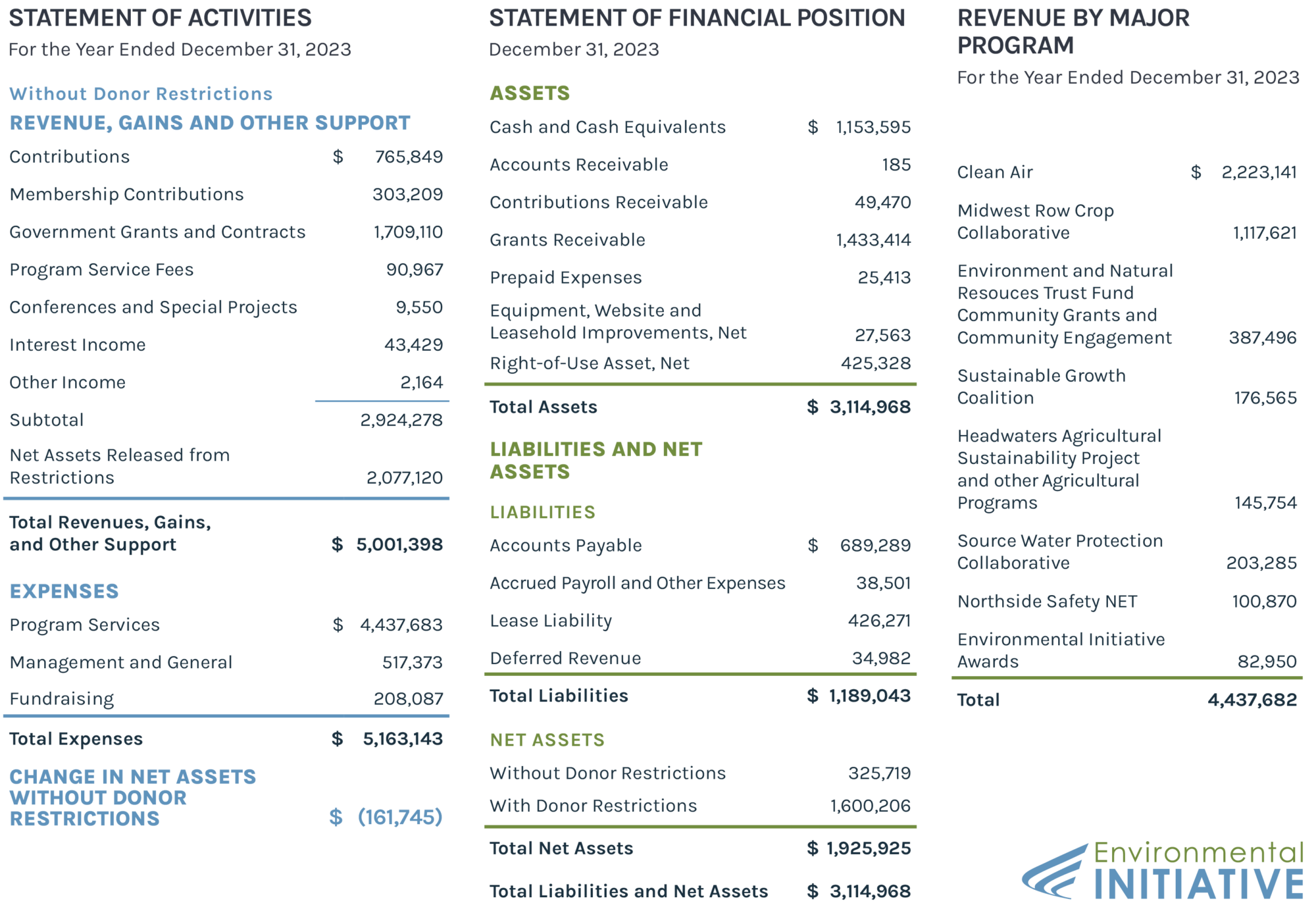 Environmental Initiative extends our sincere gratitude to everyone that supported our organization in 2023. Without you, our work to create a healthier Minnesota would not be possible.