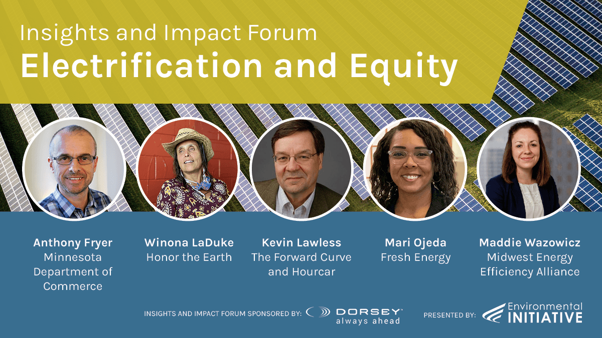 The Minnesota Department of Commerce (DOC) has been engaged in a two-year stakeholder engagement process to determine how to make this transition in an equitable way. The DOC commissioned a series of white papers regarding electrification and equity. The white paper authors shared their findings, and insights on how to move forward in the process at Environmental Initiative’s “Insights and Impact Forum: Electrification and Equity.”